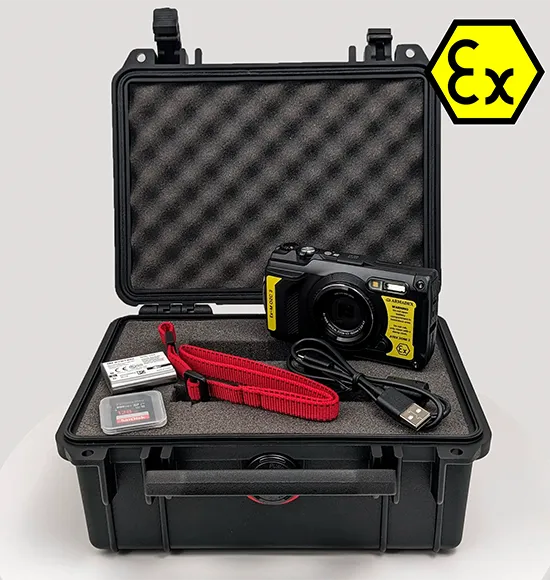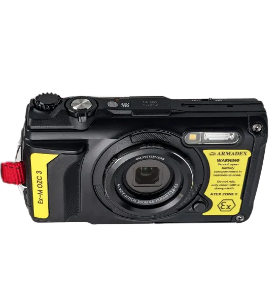 La cámara ATEX de Armadex es una cámara digital robusta y compacta certificada para su uso en zonas con riesgo de explosión de gas (ATEX Zona 2). Con un zoom óptico de 4x, captura imágenes y vídeos de alta calidad en entornos peligrosos.