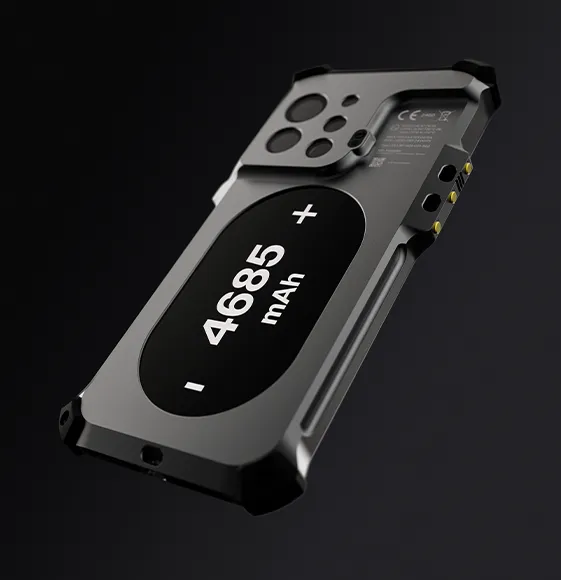 Solo 415 g con el iPhone incluido. Estructura reforzada con metales aeroespaciales, cristal Corning® Gorilla®, y protección total 360°. Soporta caídas de hasta 3 metros y cuenta con grado IP65 contra polvo y agua.