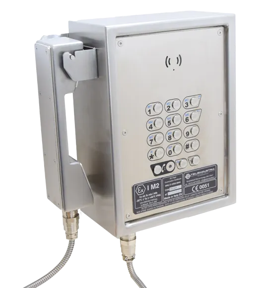- TEL501T: Con teclado completo, ideal para comunicación general en minas.